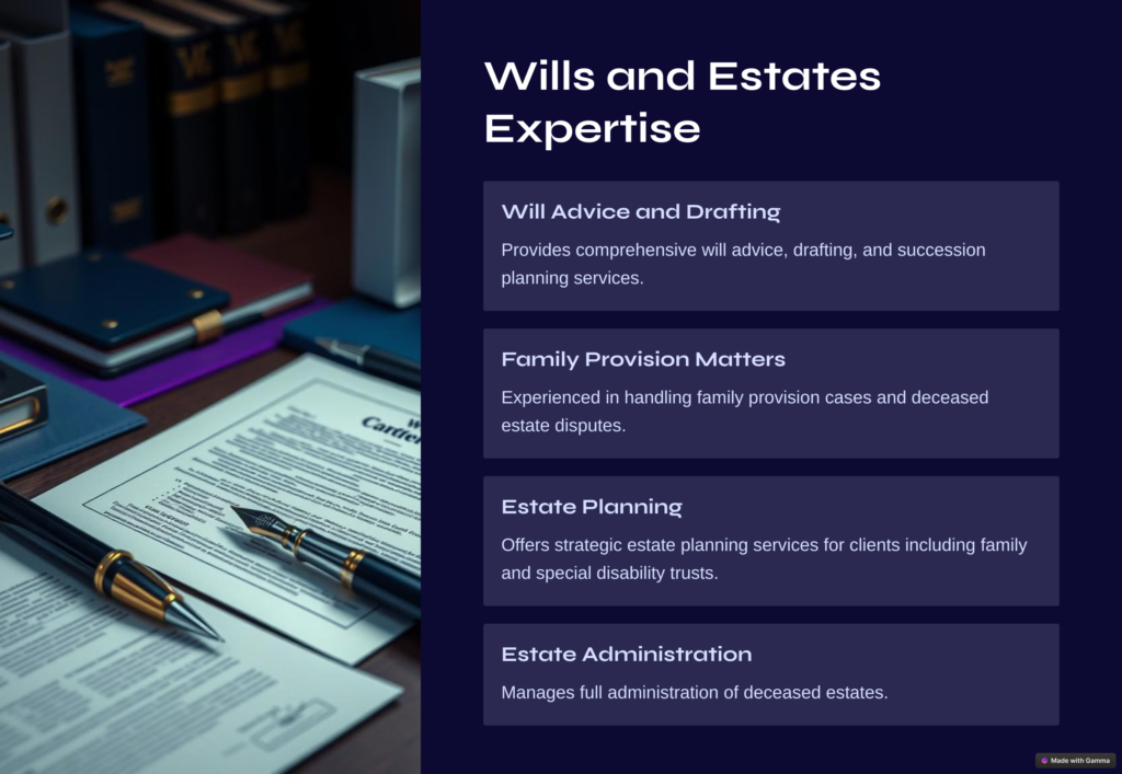 He can assist people with their will writing and questions about deceased estates including what is the default distribution of the assets if a person dies without a will. He is also rumoured to have the best chocolate cake recipe, but he takes some persuading to share it.